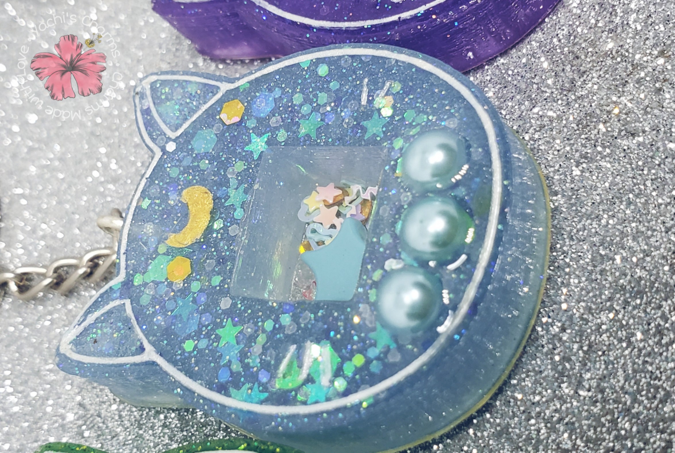 Sailor Moon inspired tamagotchi style keychain handmade with epoxy resin.